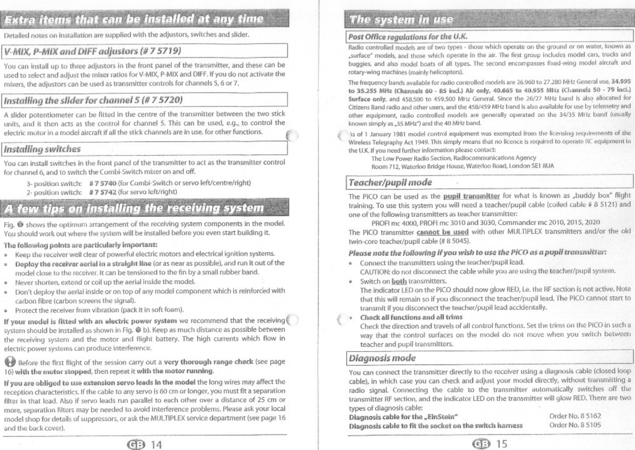 Multiplex USA PICOCOCKPIT Remote Control Transmitter User Manual User Man