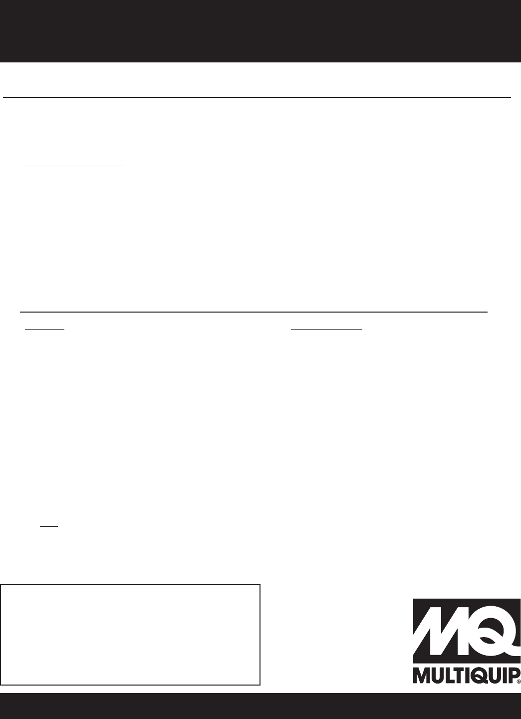 © COPYRIGHT 2013, MULTIQUIP INC.