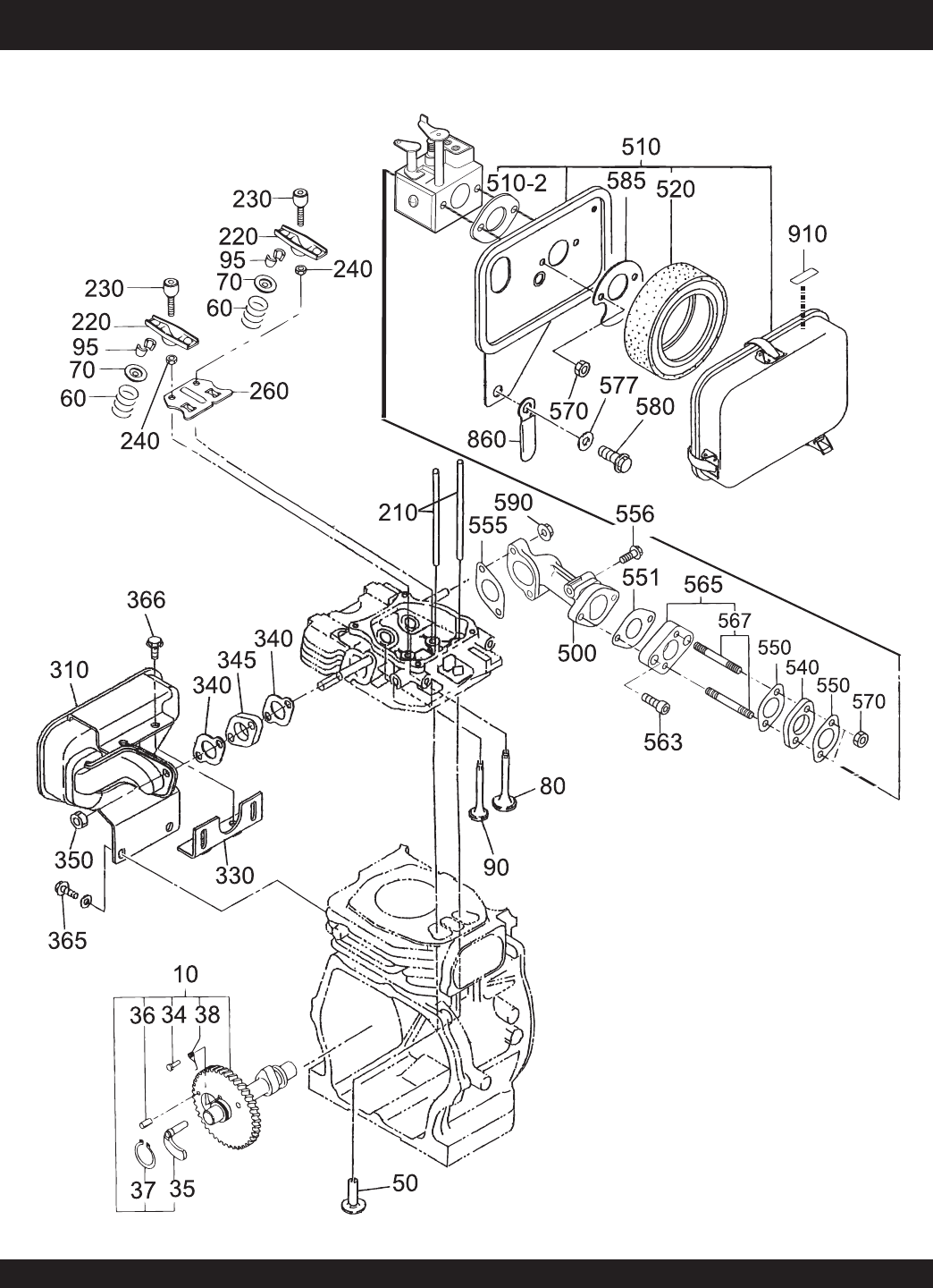 Muffler, Air Cleaner, Camshaft,& Carb. Assy. .38-39