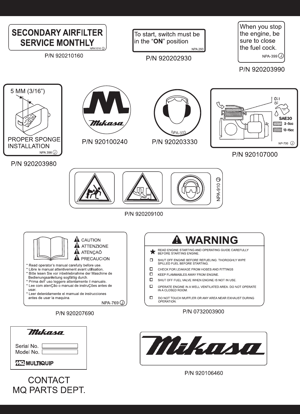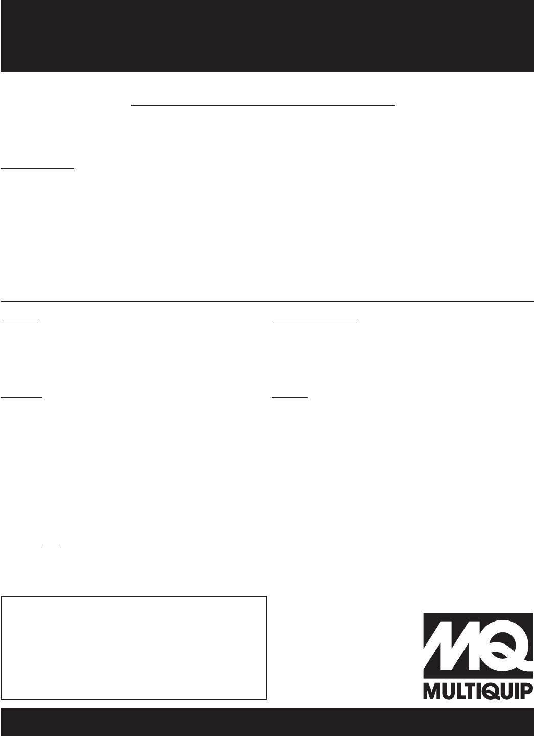 Multiquip Inc, the MQ logo and the Mikasa logo are registered trademarks of Multiquip Inc. and may not be used, reproduced, or altered without written permission. All other