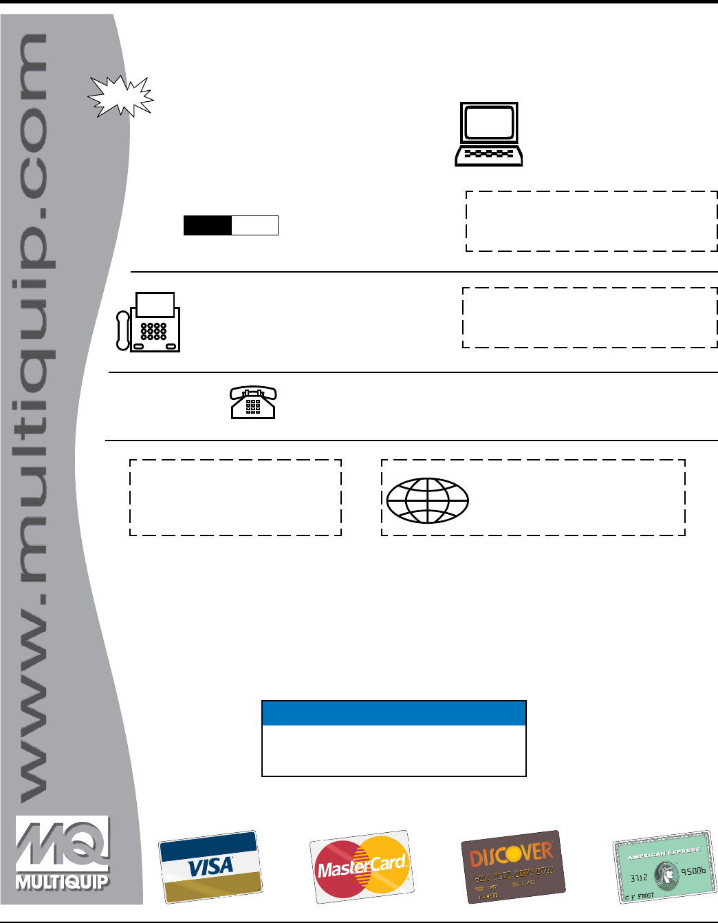 Multiquip Inc and the MQ logo are registered trademarks of Multiquip Inc. and may not be used, reproduced, or altered without written permission. All other trademarks are the property