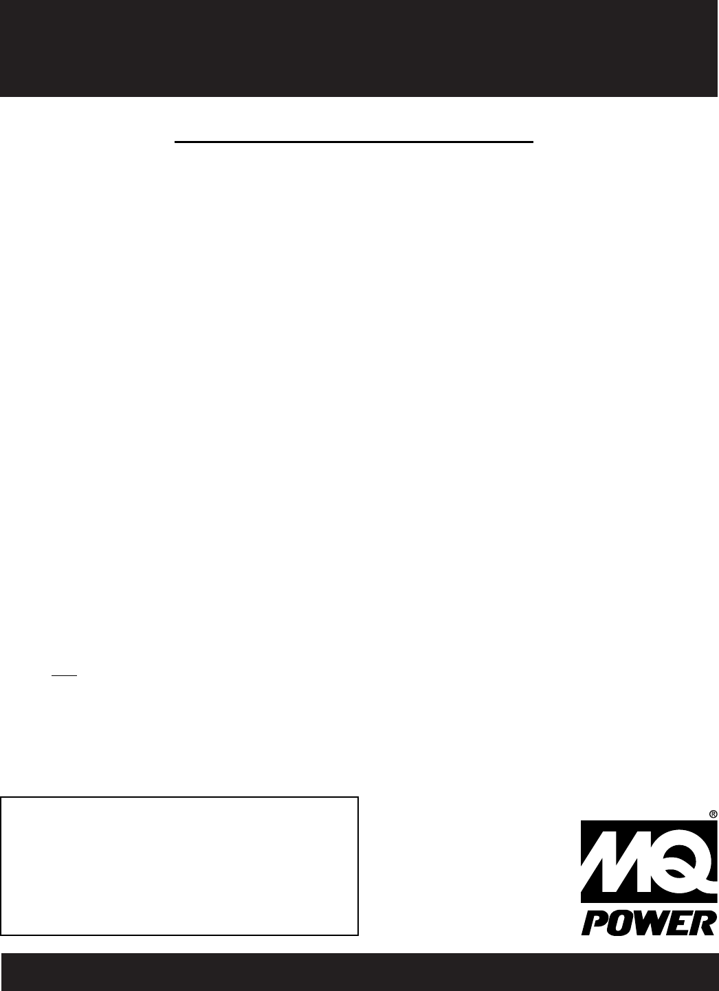 Further, MQ Power disclaims any warranties or guaranties, expressed or implied, with regards to the information contained in this manual. Manufactured for