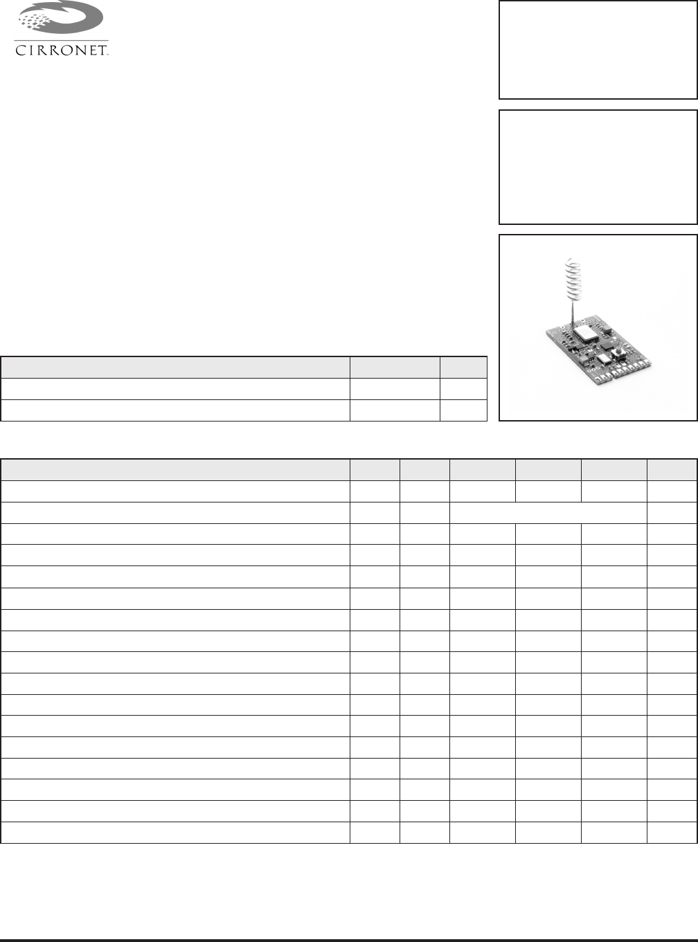 •Compatible with Cirronet miniMESHTM Network Protocol
