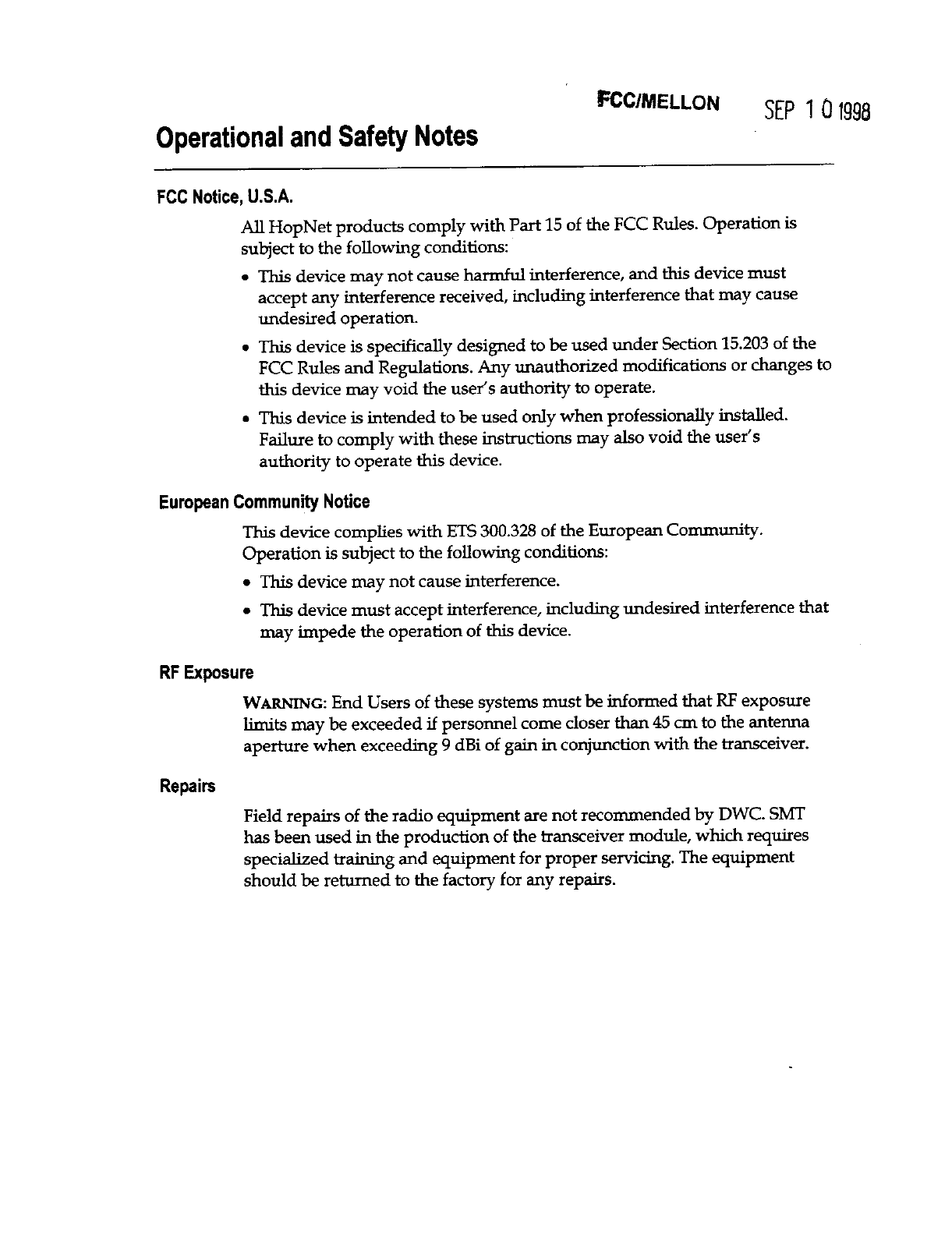 Murata Electronics North America HN1500 Data Transceiver User Manual 79825