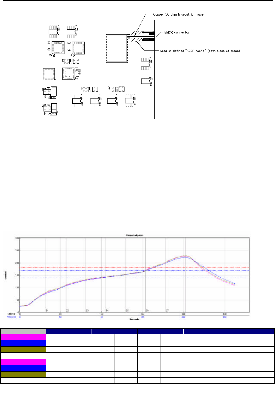 The PCB trace that connects the RF output of the module to the MMCX connector must have a