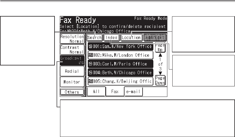 You can send a fax or e-mail to multiple destinations, press [Broadcast]:
