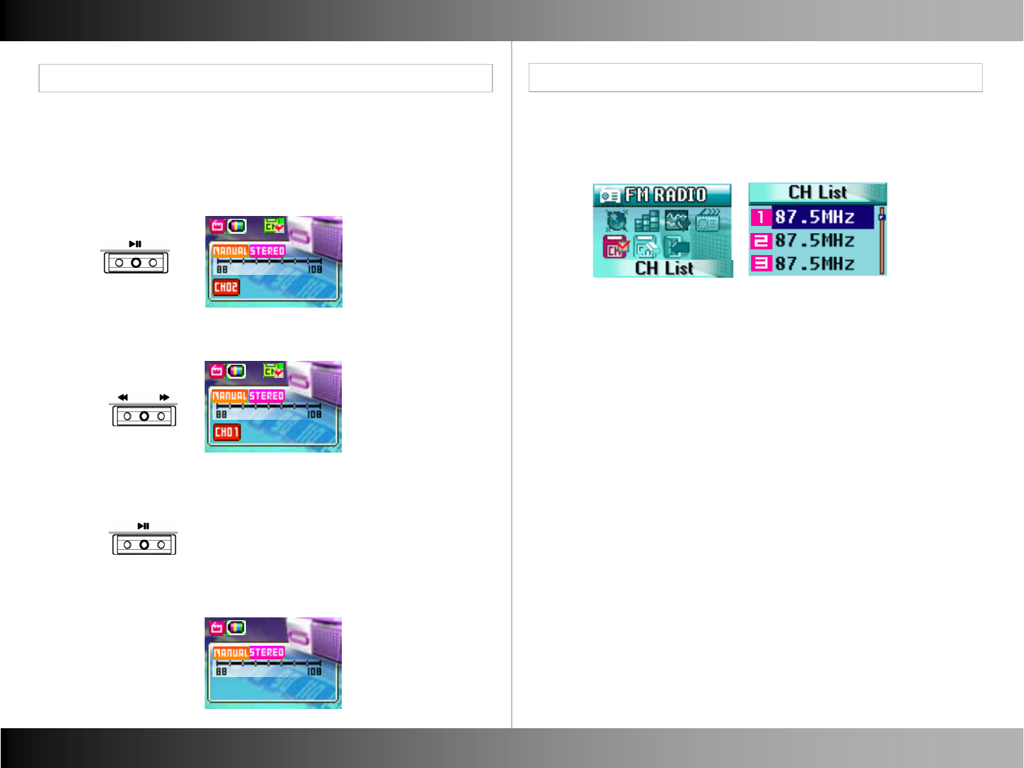 - Click (▶II) and CH number and CH Saved icon blinks,