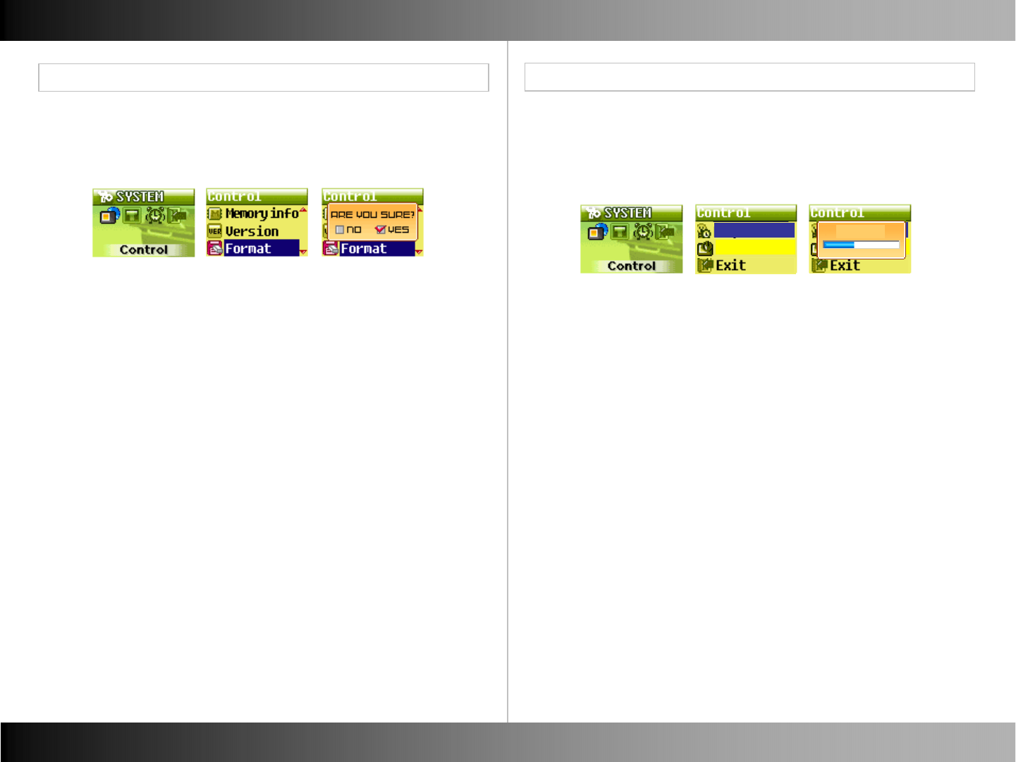 - You can format the flash memory to erase all stored files. - You can set the amount of time the backlight time stays on after