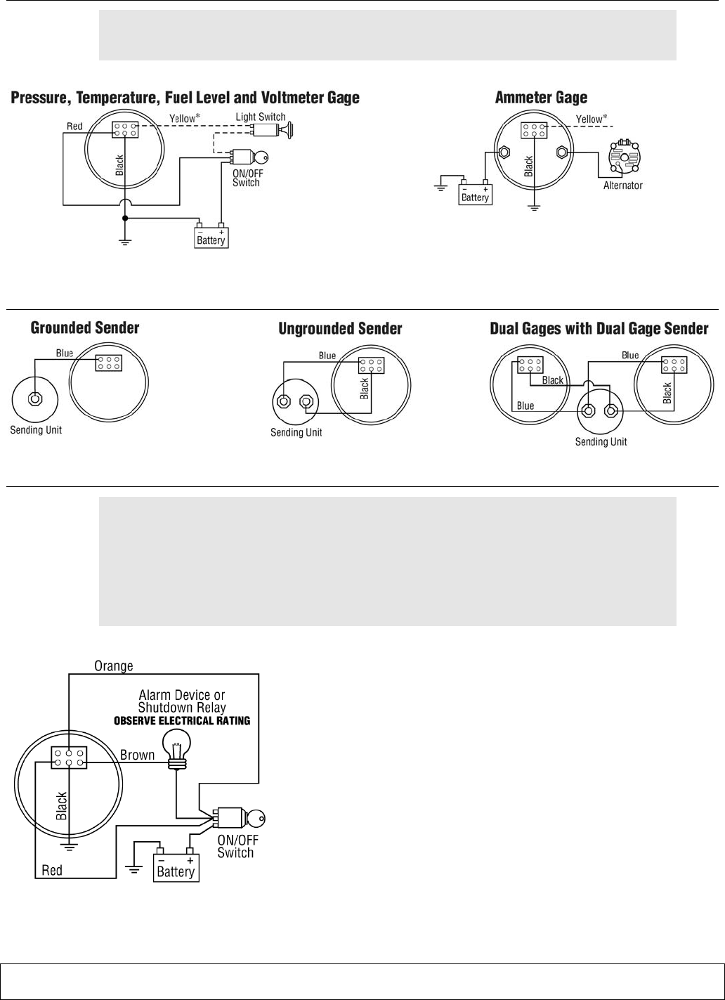 for Pressure, Temperature, Fuel Level, Voltmeter and Ammeter