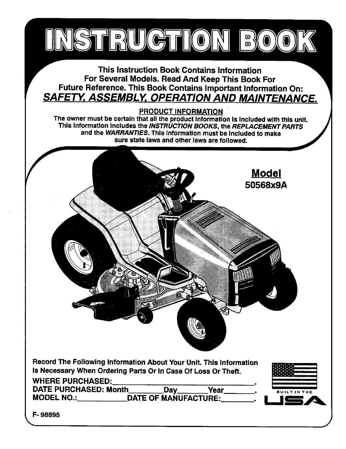 Murray 50568X9A User Manual TRACTOR Manuals And Guides L0104223