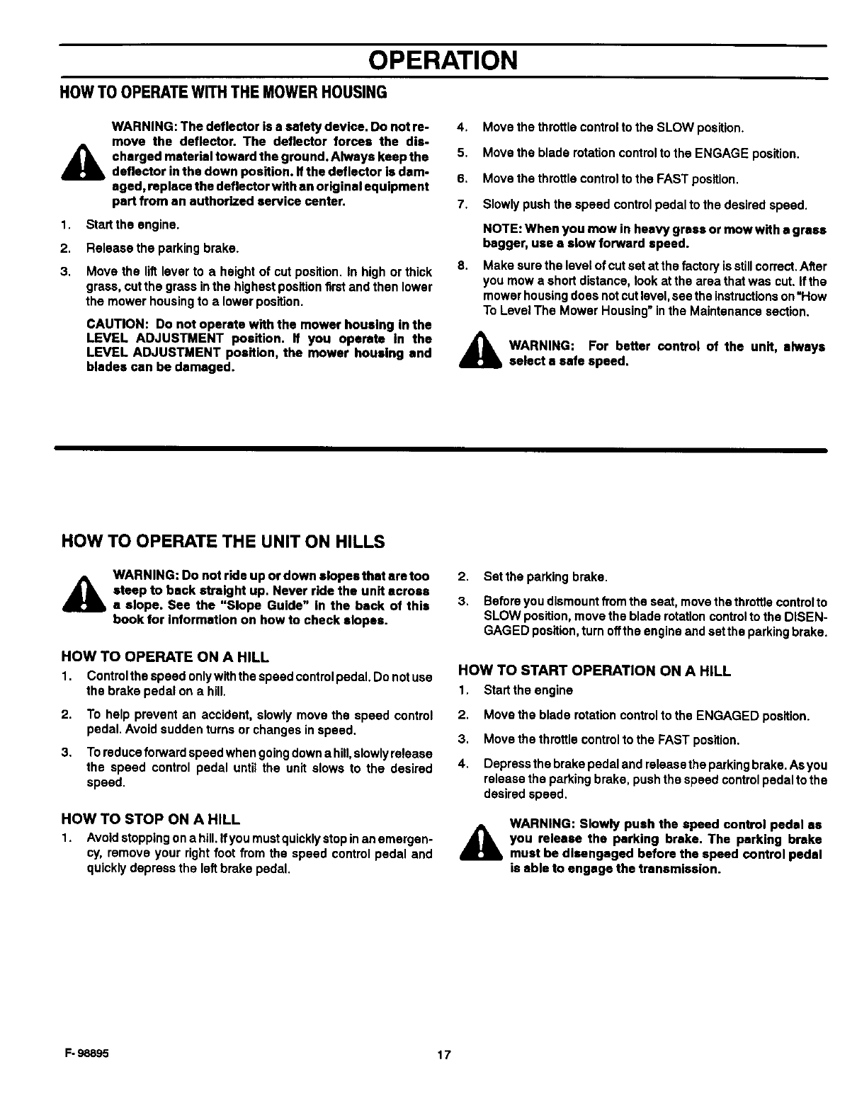 HOW TO OPERATE WITH THE MOWER HOUSING .......... 17