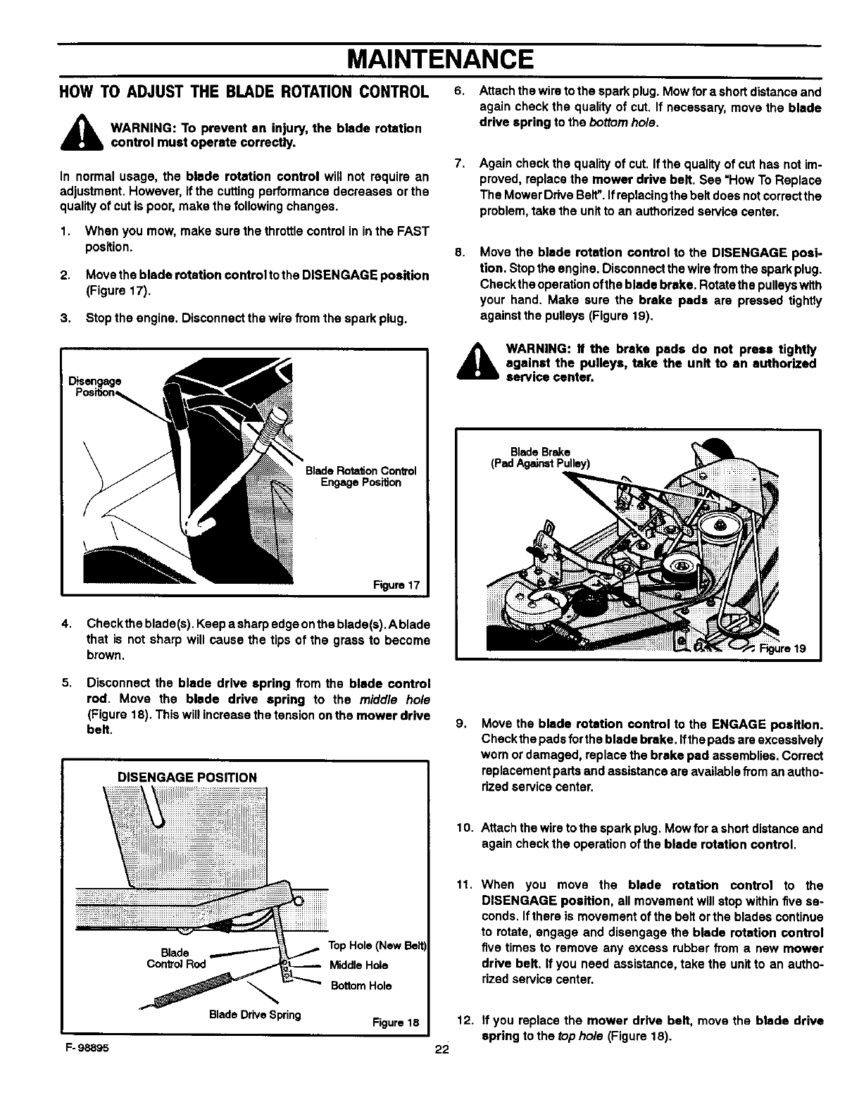HOW TO ADJUST THE BLADE ROTATION CONTROL ....... 22