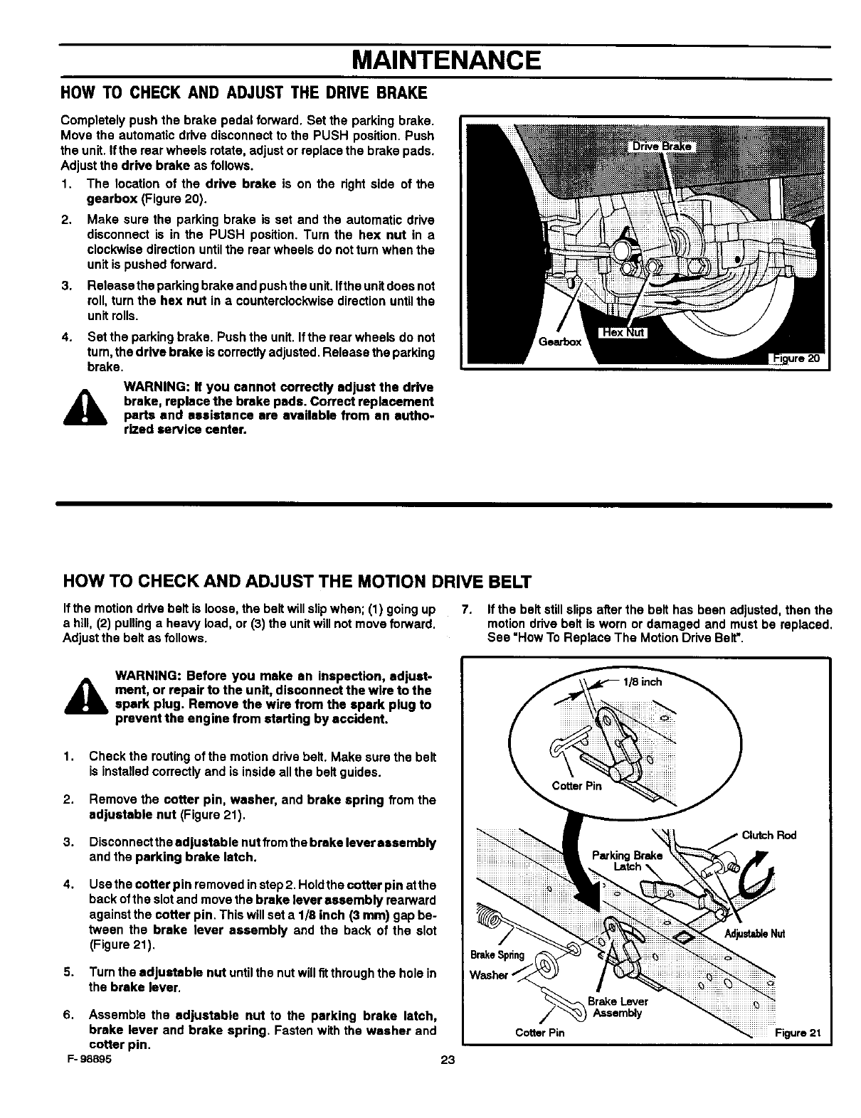 HOW TO CHECK AND ADJUST THE DRIVE BRAKE ......... 23