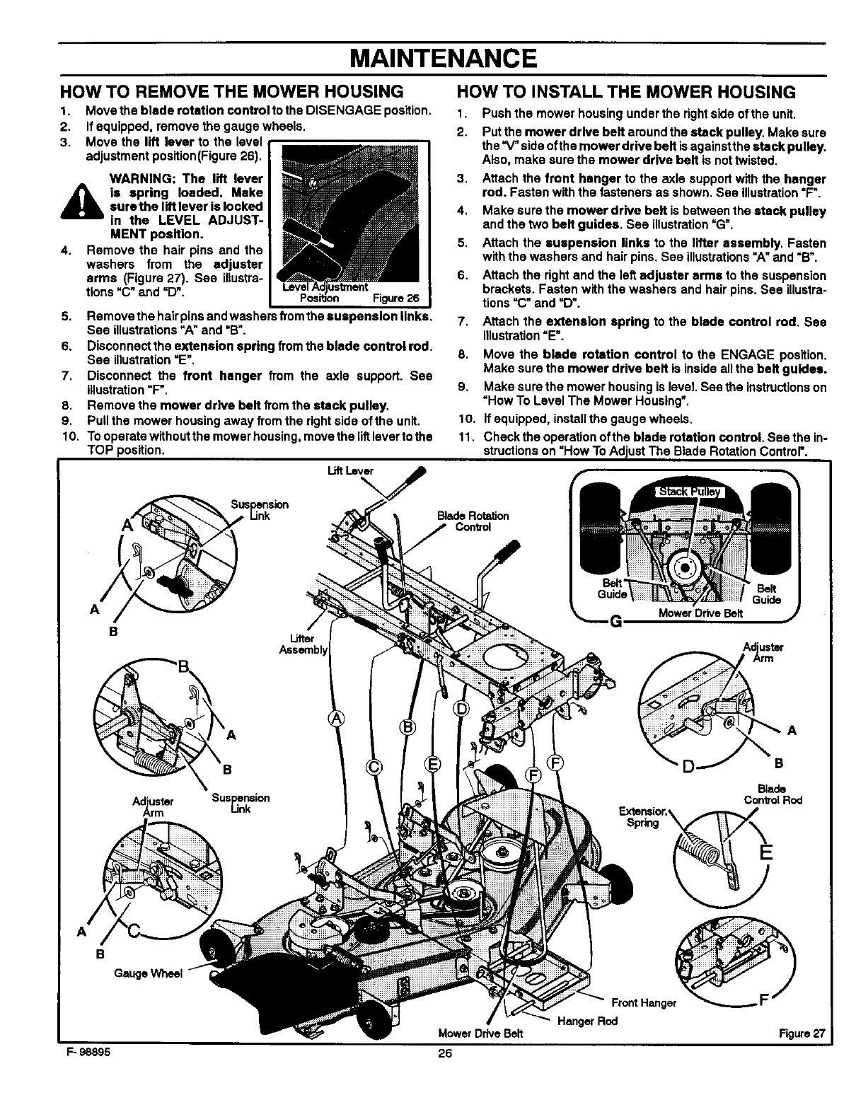 HOW TO INSTALL THE MOWER HOUSING ................. 26