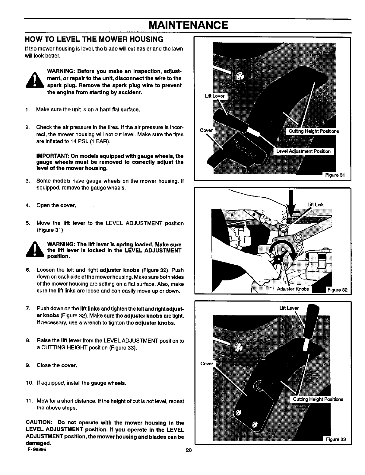 HOW TO LEVEL THE MOWER HOUSING ................... 28