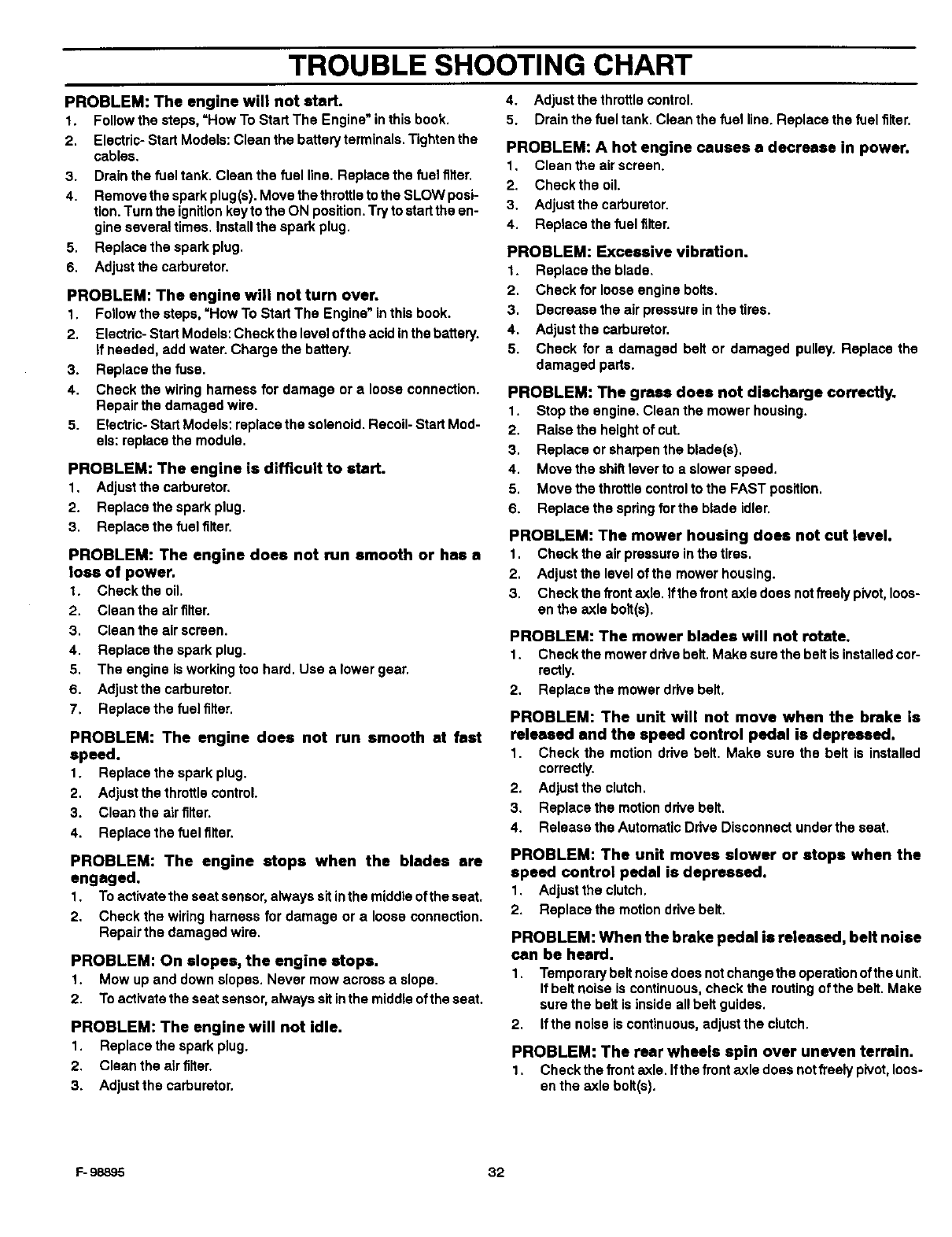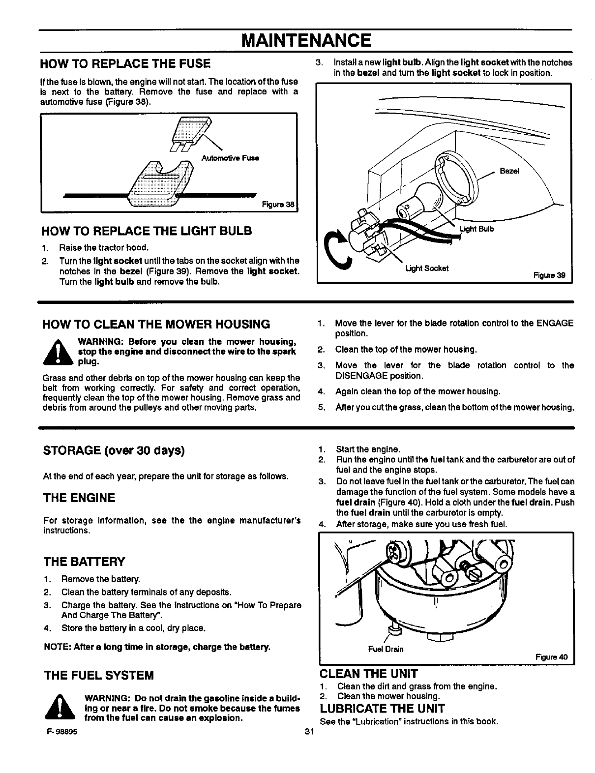 HOW TO CLEAN THE MOWER HOUSING .................. 31