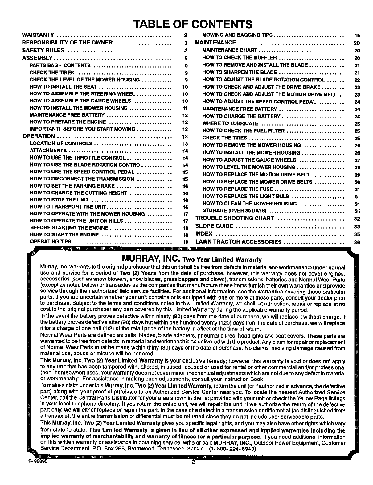 LAWN TRACTOR ACCESSORIES ...................... 36