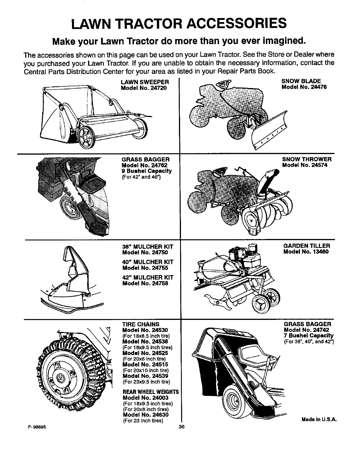 The accessories shown on this page can be used on your Lawn Tractor. See the Store or Dealer where