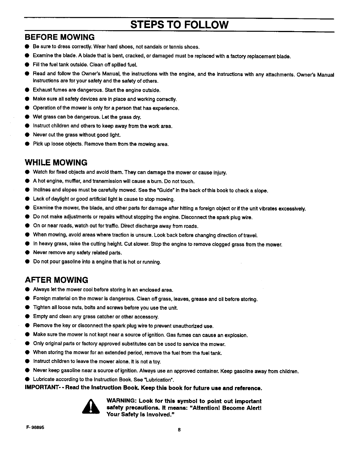 IMPORTANTI BEFORE YOU START MOWING .............. 12