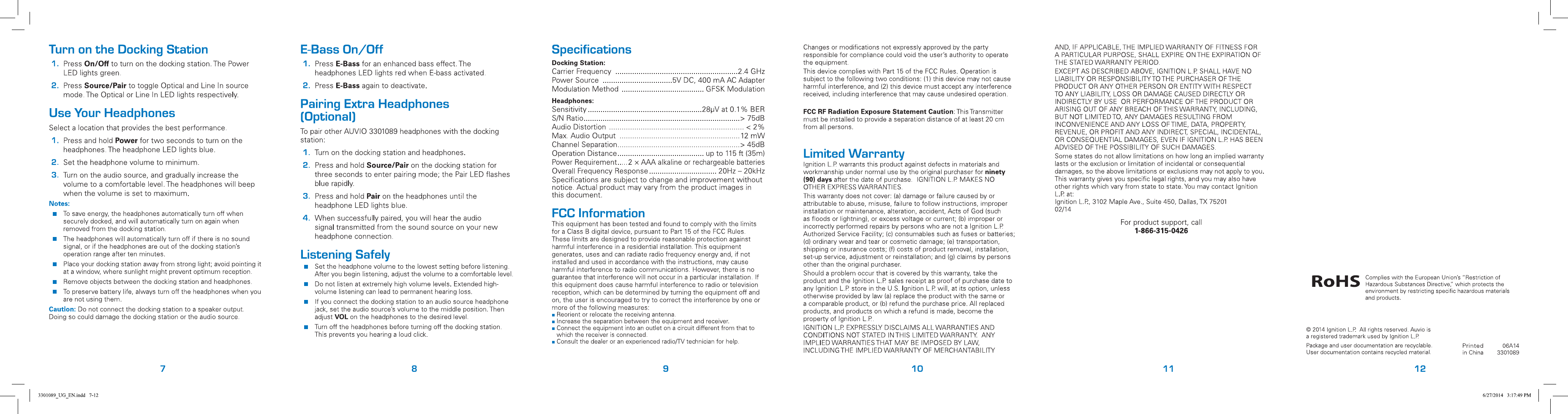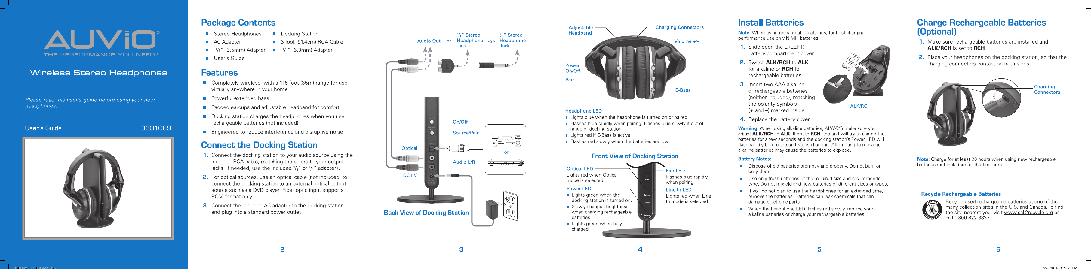 Musical Electronics 3301089T Wireless Stereo Headphones - Docking Station User Manual 3301089 UG EN1 062014