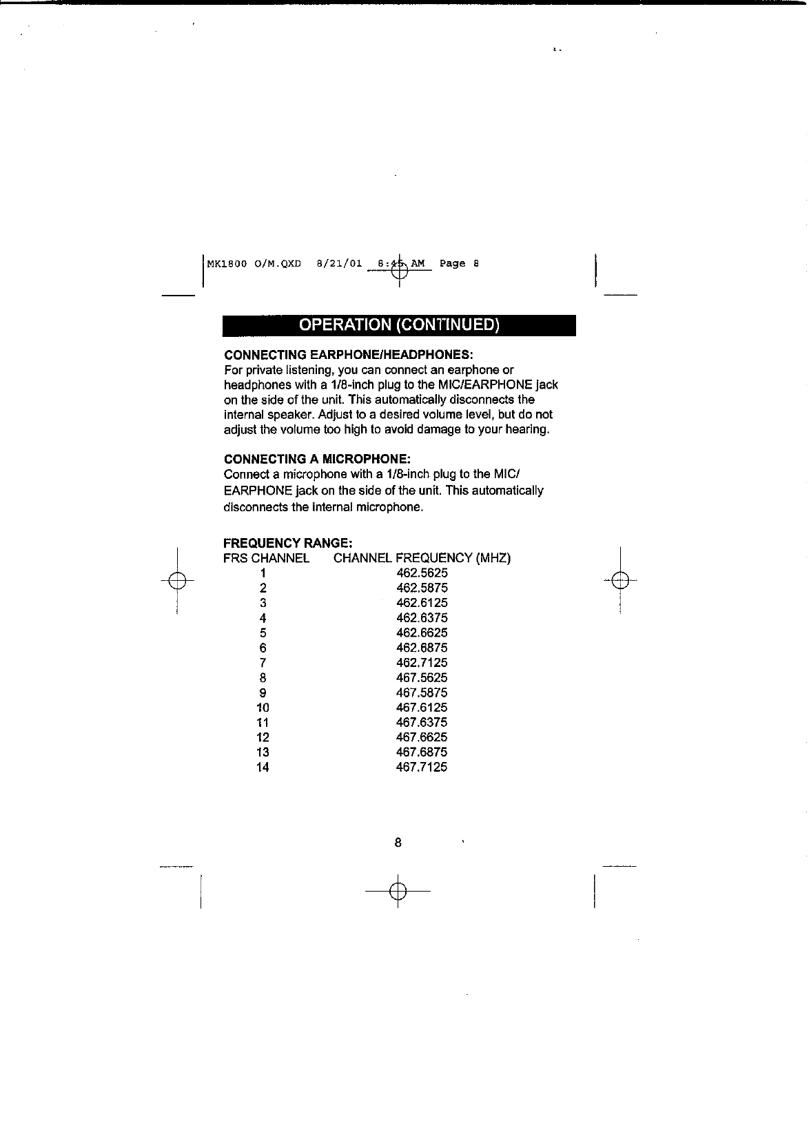 Musical Electronics BU80 Two Way Family Radio System User Manual