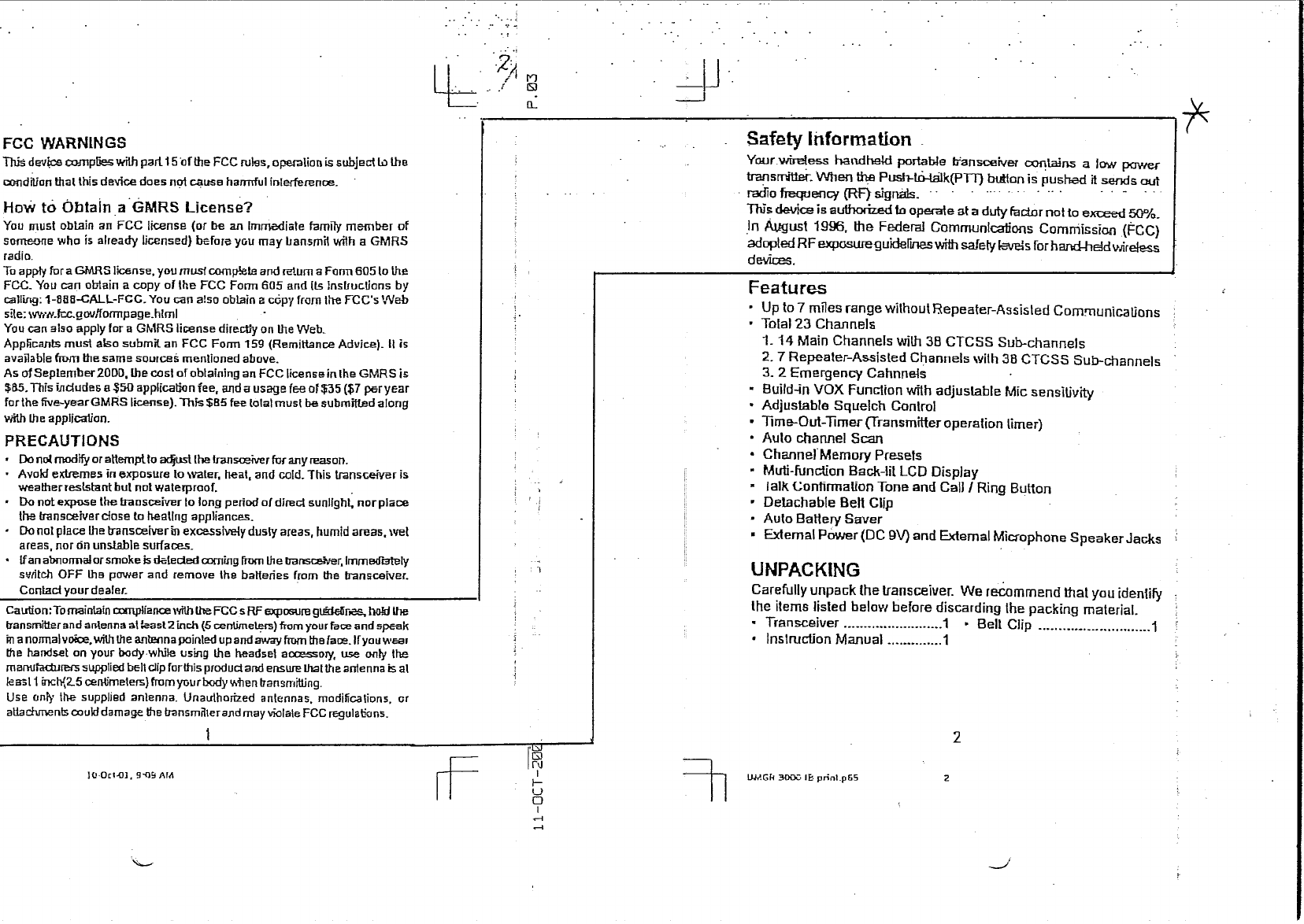 Musical Electronics Ltd GMRS Transceiver RF Safety Information