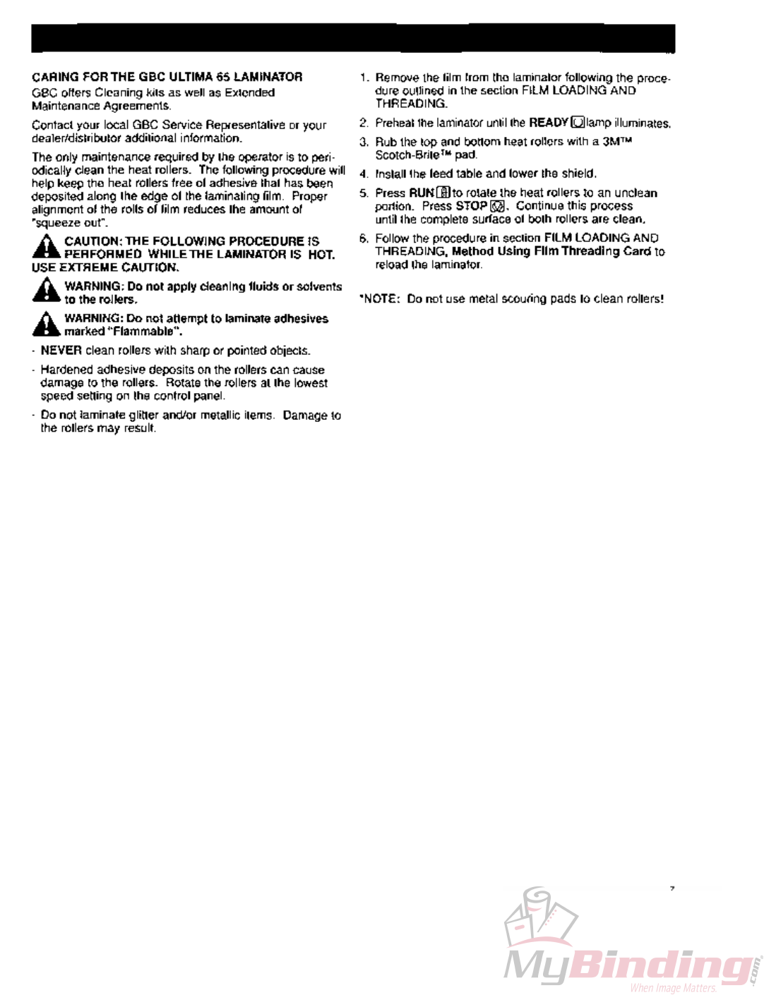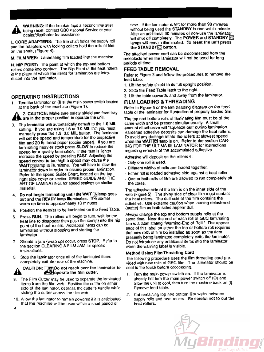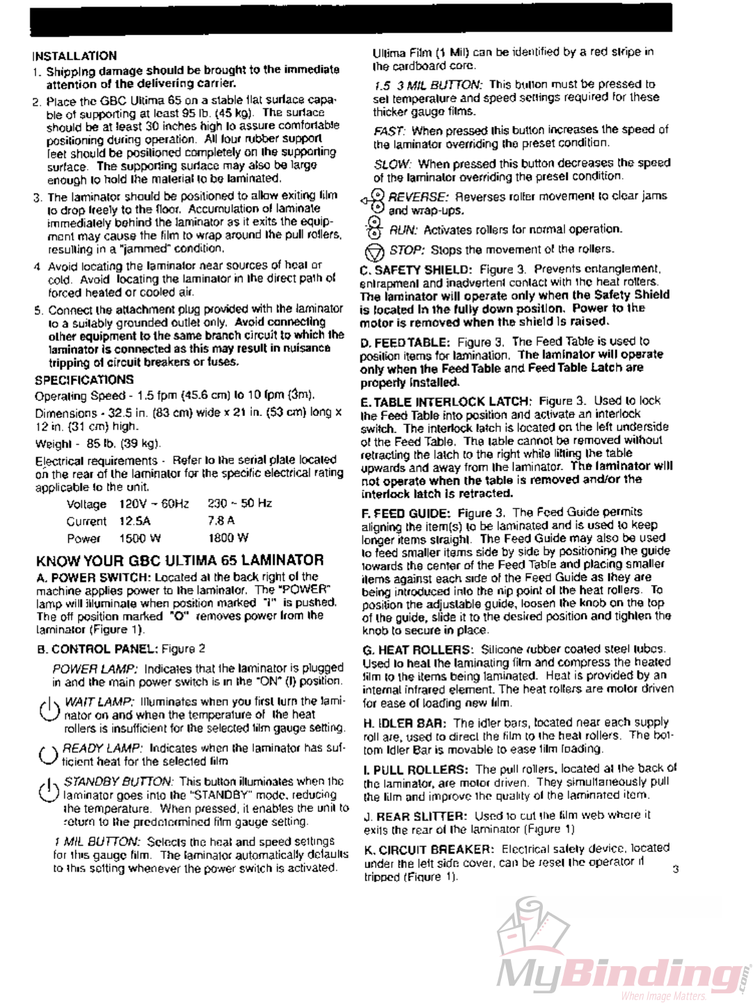 User Manual: MyBinding Gbc-Ultima-65-Operating-Instructions