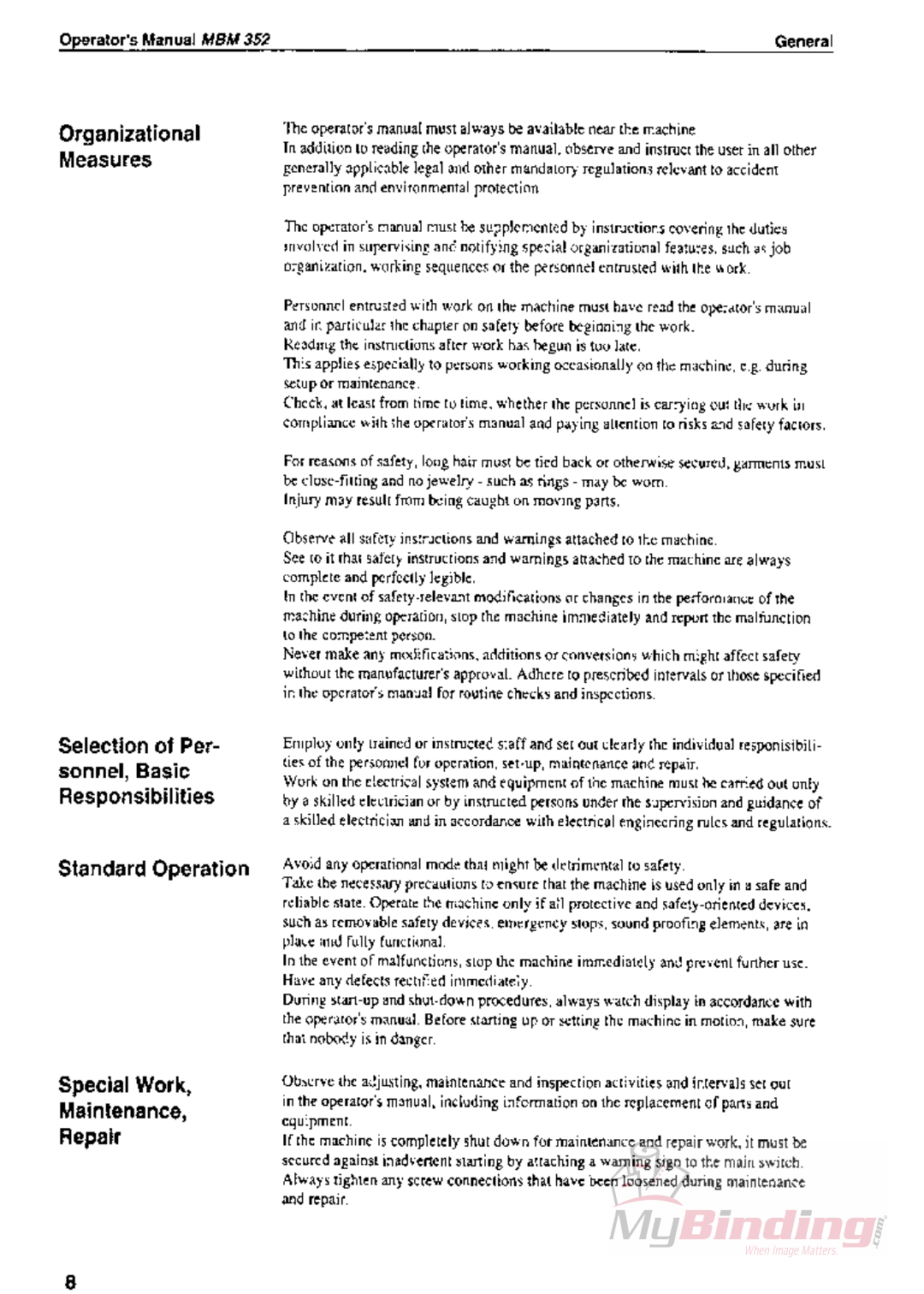 User Manual: MyBinding Mbm-352-Manual