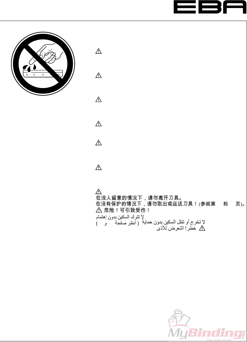 GB Do not reach beneath the blade!