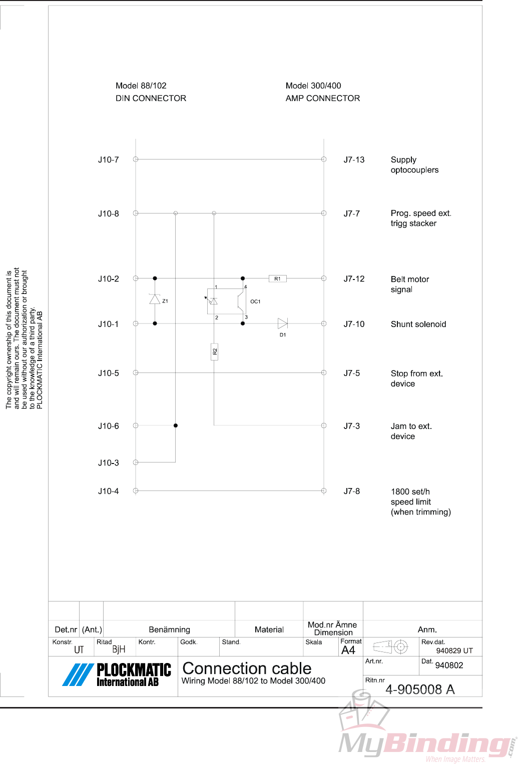 MyBinding Plockmatic 88 102 1020 Bm Service Manual User