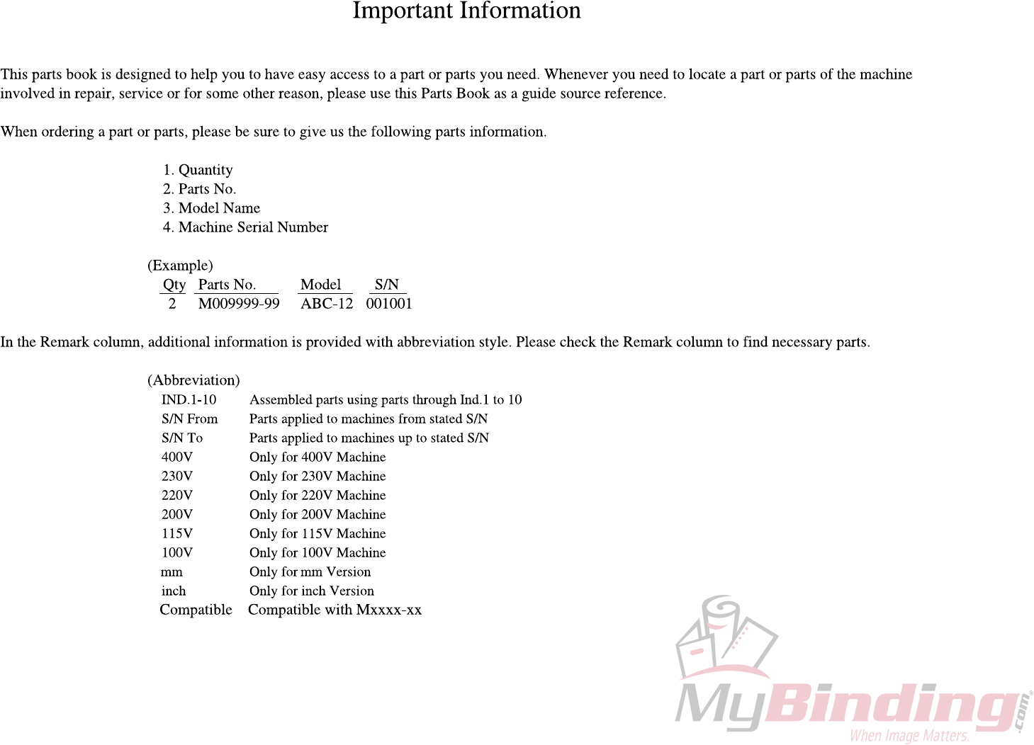 User Manual: MyBinding Standard-Horizon-Pc-45-Parts