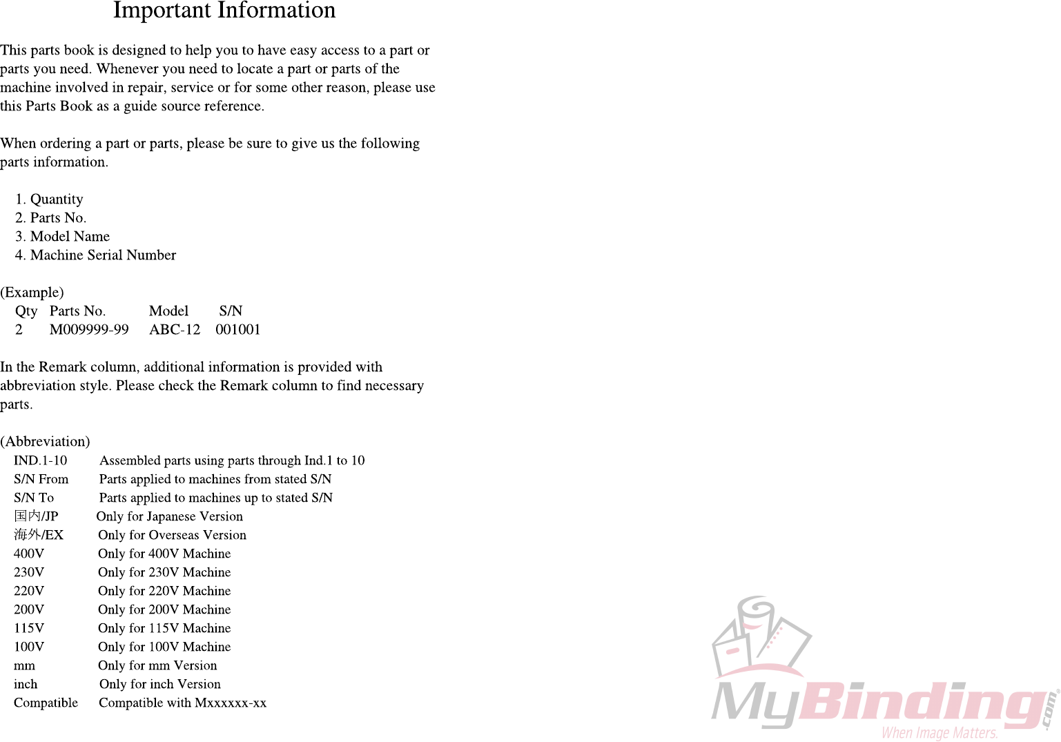 User Manual: MyBinding Standard-Horizon-Pf-P280-Parts