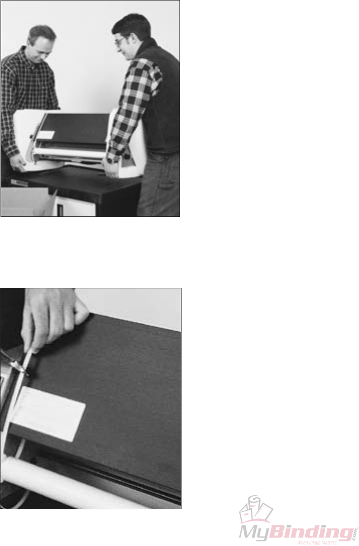 • Use care in unpacking and lifting the laminator. Keep laminator level when lifting or moving.
