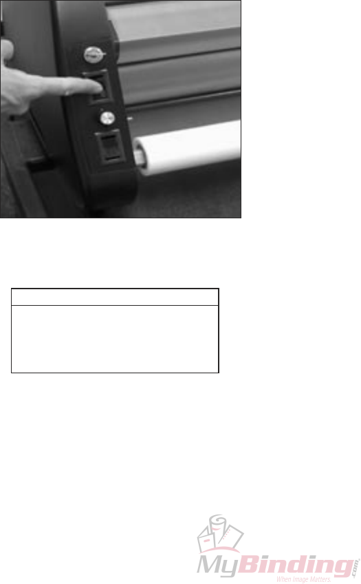 around or jam on or near heat shoes, first turn the heat switch OFF and allow laminator to cool to