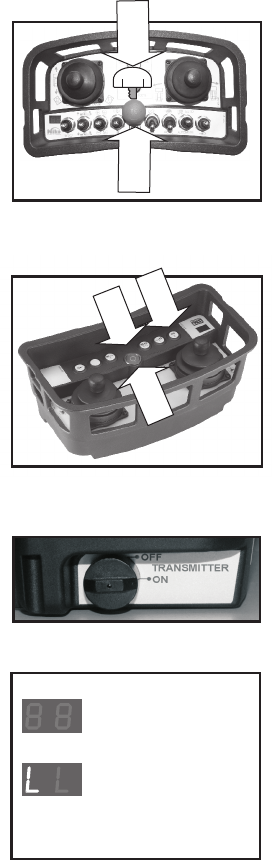 To turn off the transmitter push the “EMERGENCY STOP” switch.