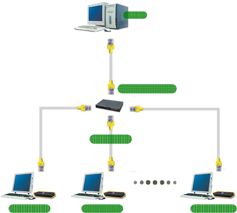 - To connect eight to ten OfficeStationTM terminal to a single host PC, the following