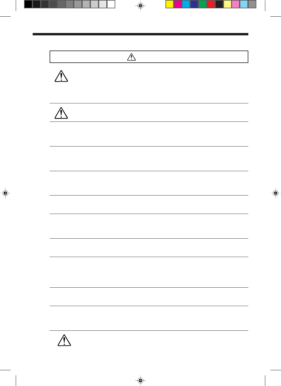shocks or strong vibrations. Doing so will lead to fires or electric