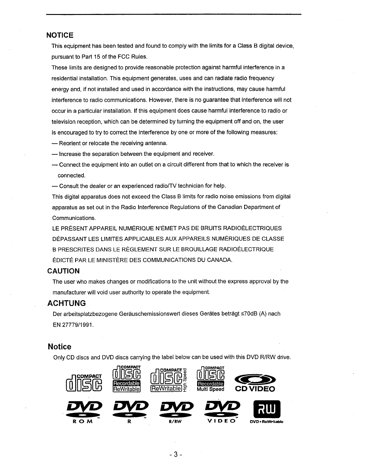 NEC Display Solutions of America, Inc. Internal DVD CD-R/ RW Drive Users Manual
