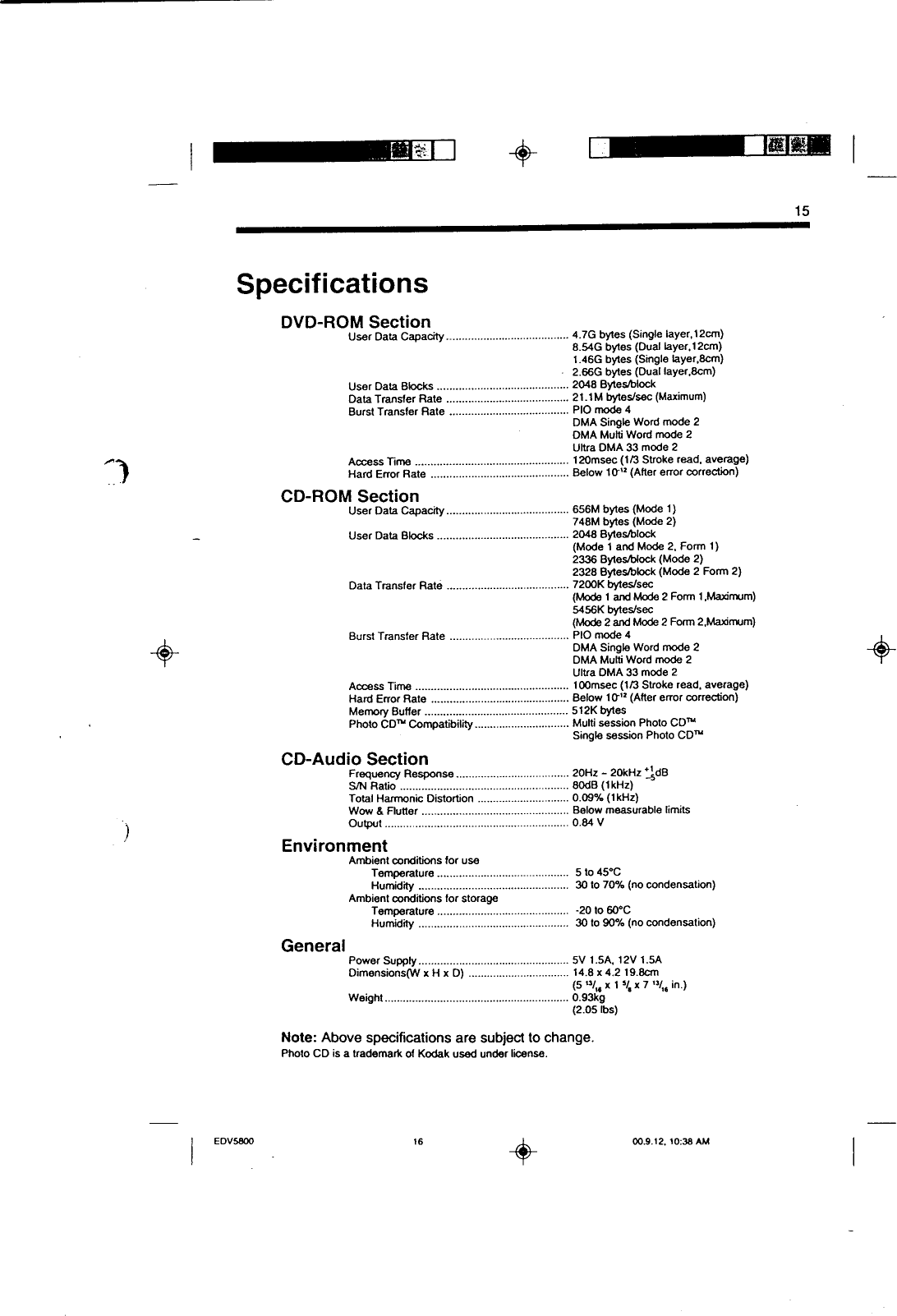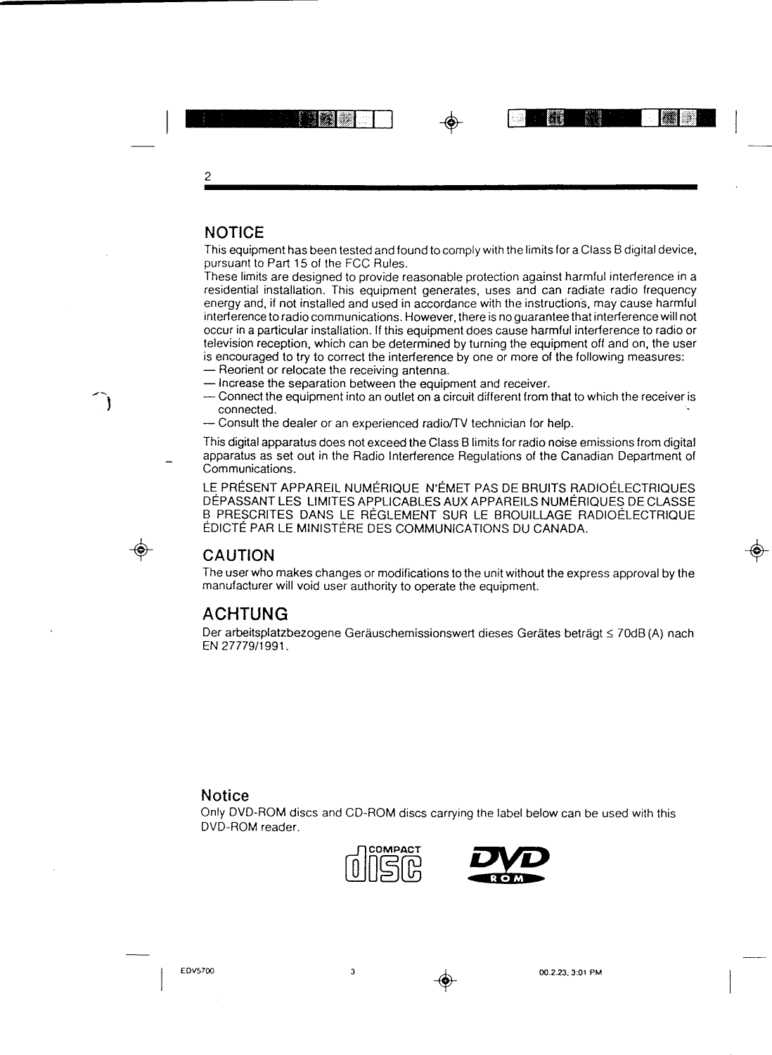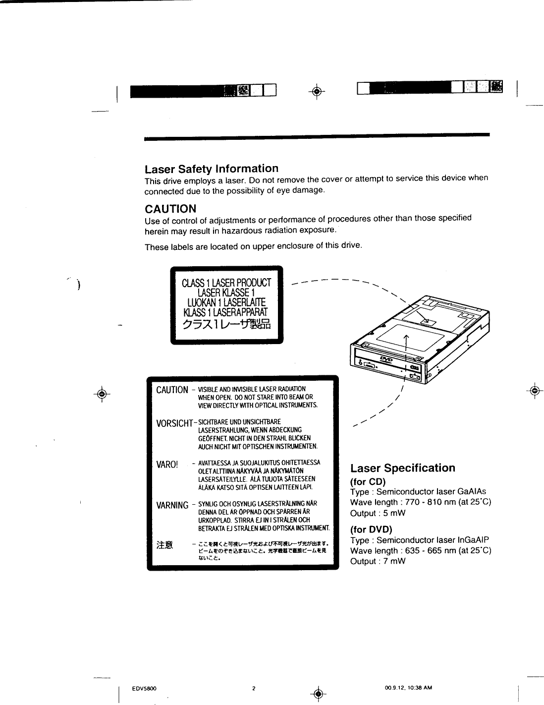 NEC Display Solutions of America DV-5800A Internal IDE DVD-ROM Reader User Manual