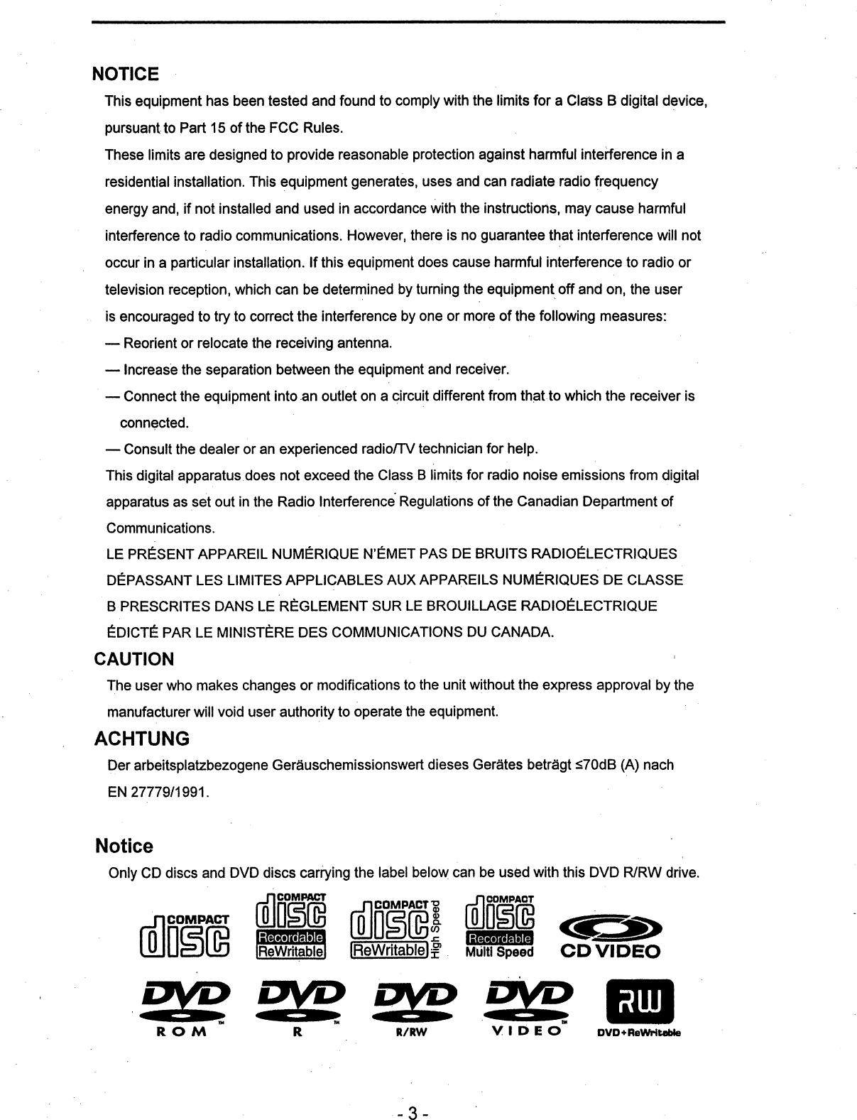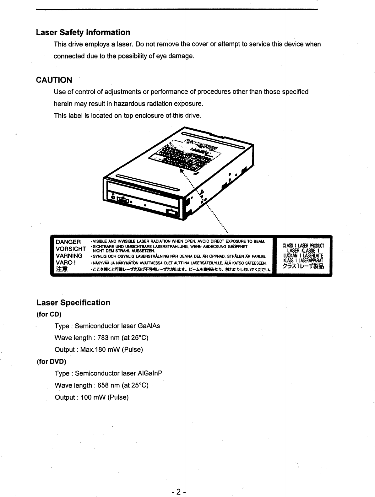 NEC Display Solutions of America, Inc. Internal DVD CD-R / RW Drive Users Manual