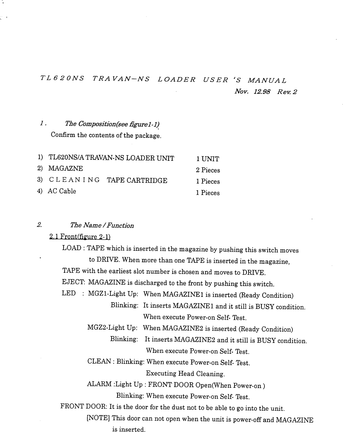 TL620NS User Manual