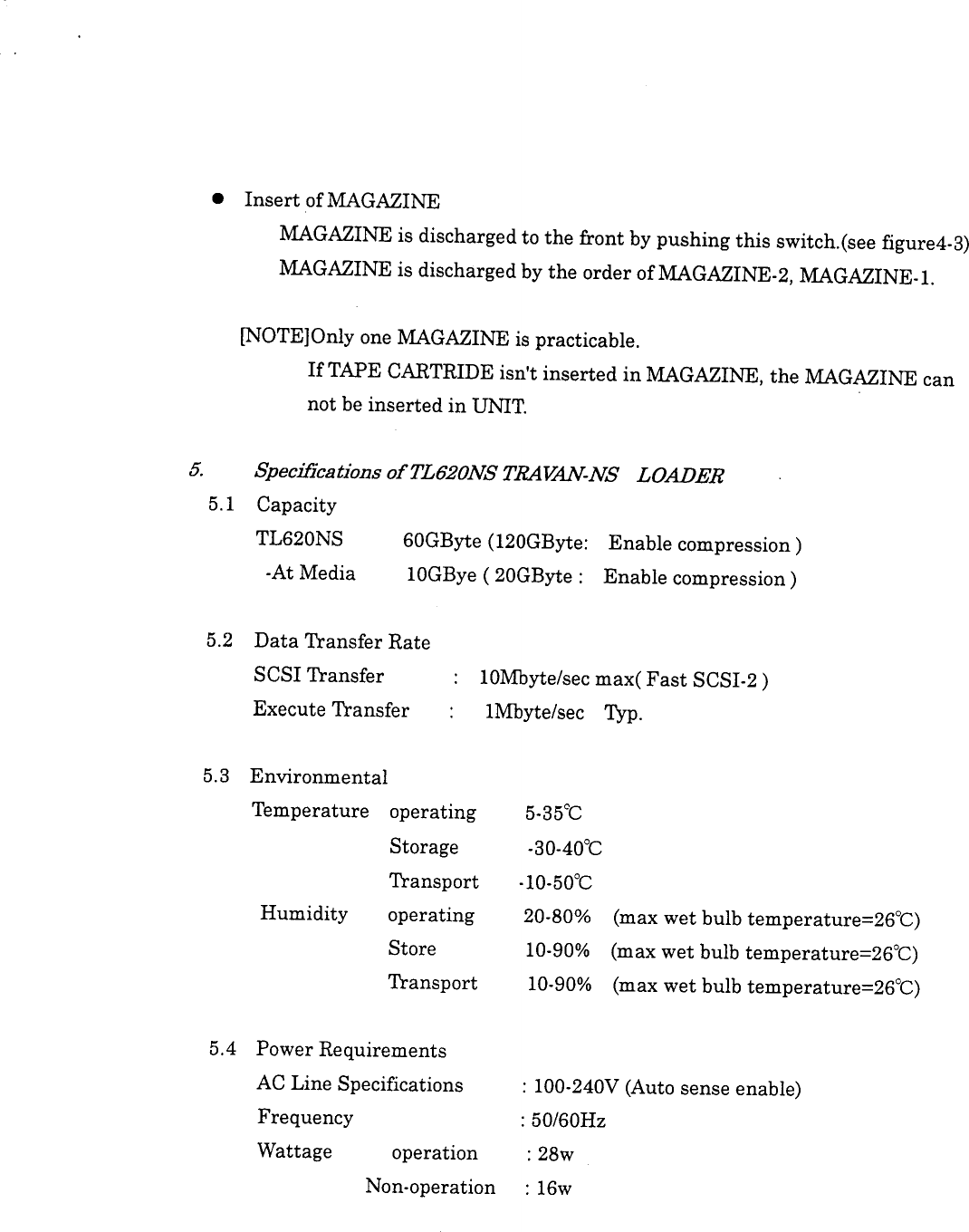 NEC Display Solutions of America TL620NS TRAVAN NS LOADER (SCSI DEVICE) User Manual