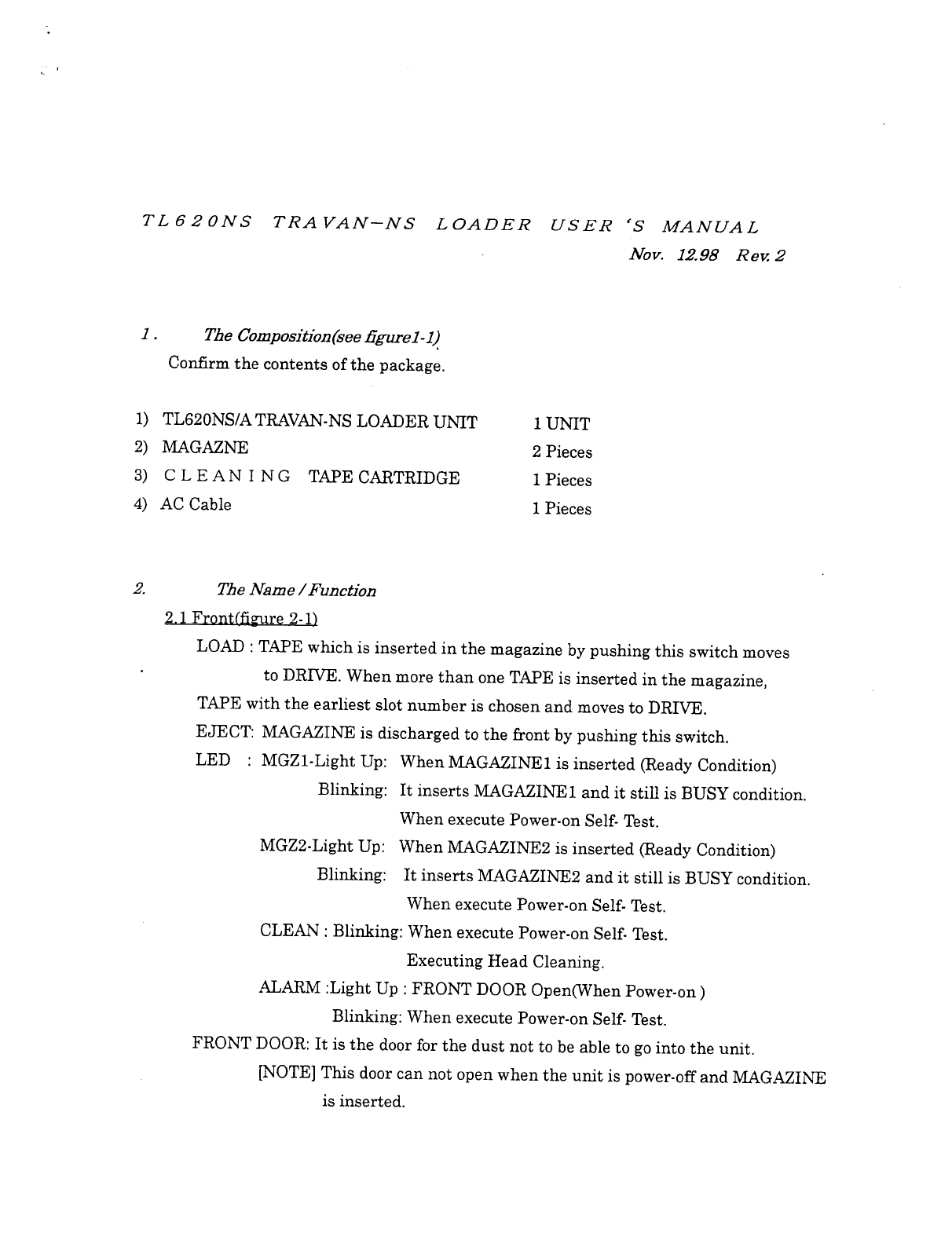NEC Display Solutions of America TL620NS TRAVAN NS LOADER (SCSI DEVICE) User Manual