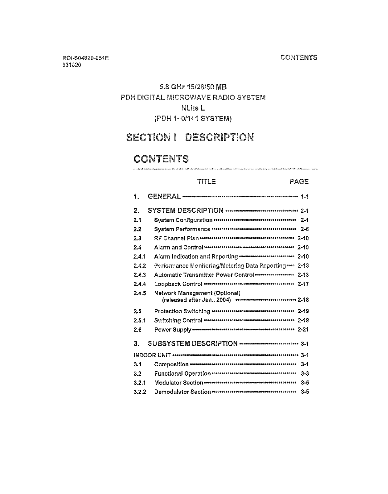 NEC Corporation of America 5.8 GHz Unlicensed Digital Microwave Radio Manual Volume I