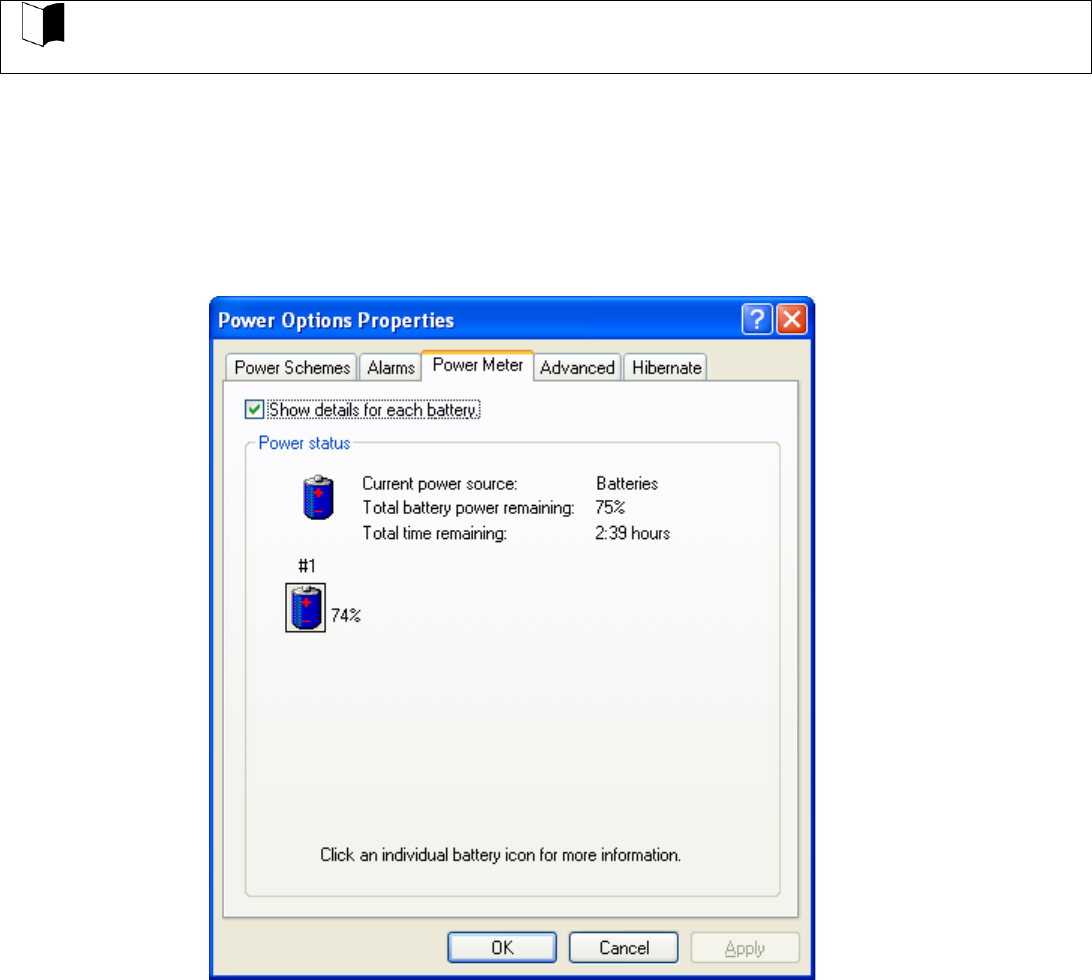 For Windows XP, the dialog box shown below appears to allow you to check the remaining battery level.