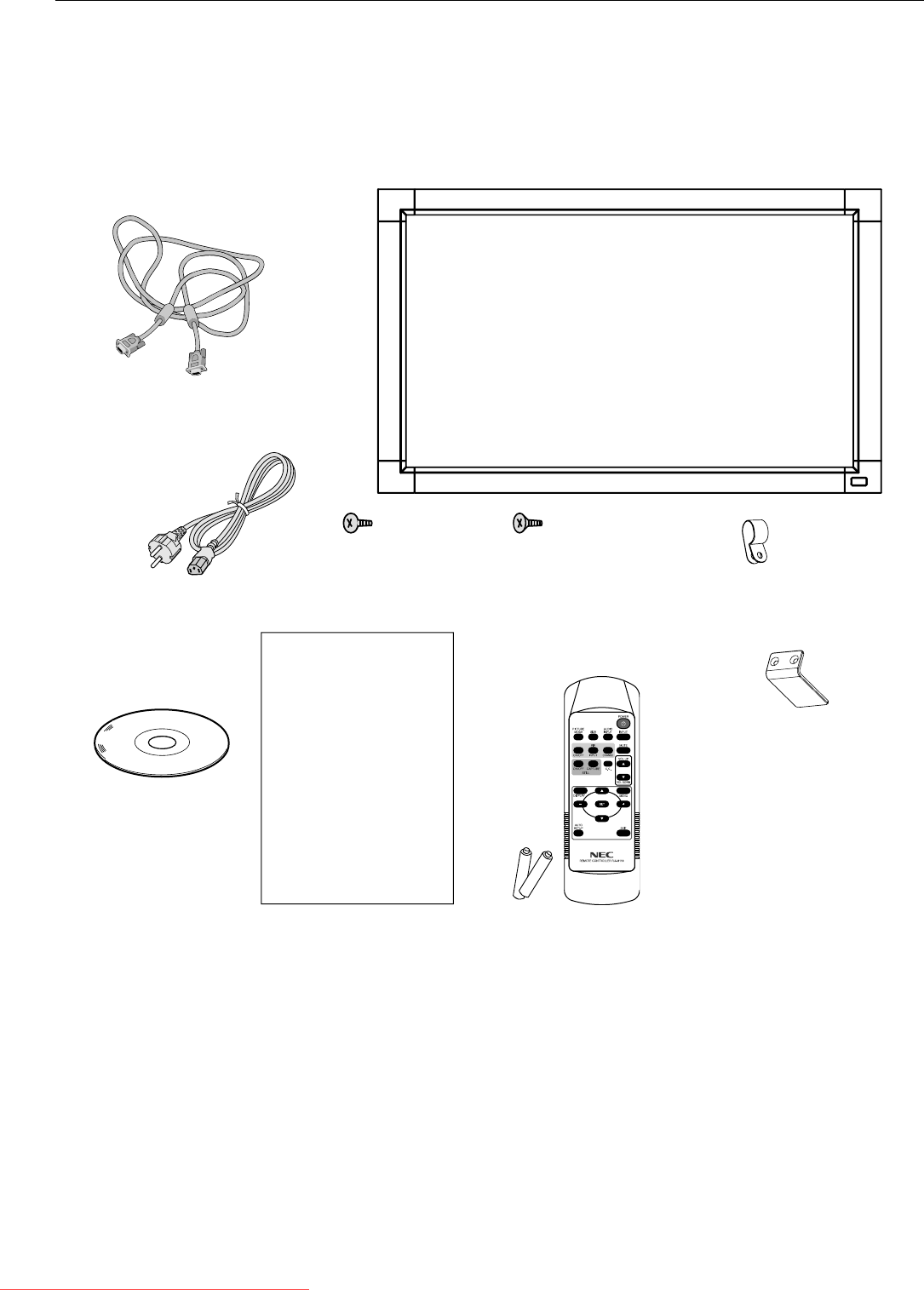 Accessories Setup manual, Power Cord, Video Signal Cable, Remote Control, AAA Battery x 2, Clamp x 2,