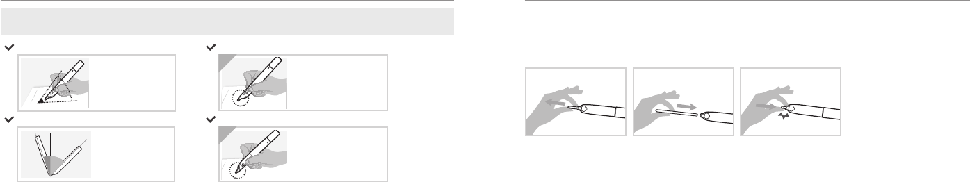 · The pen can recognize only a certain degree (-20°C~+40°C). Hold the pen upwards where it can recognize the angle.