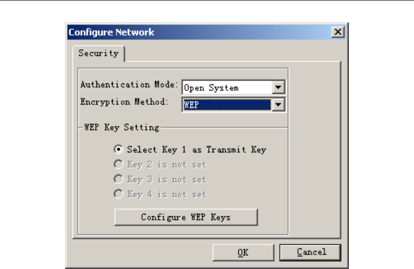 The Security screen (Figure 6-10) will appear. Choose the Authentication Mode and Encryption