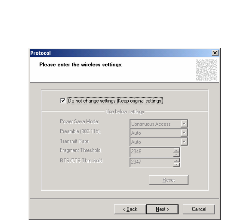 The Protocol screen will appear. Select Do not change settings, then, click Next button.