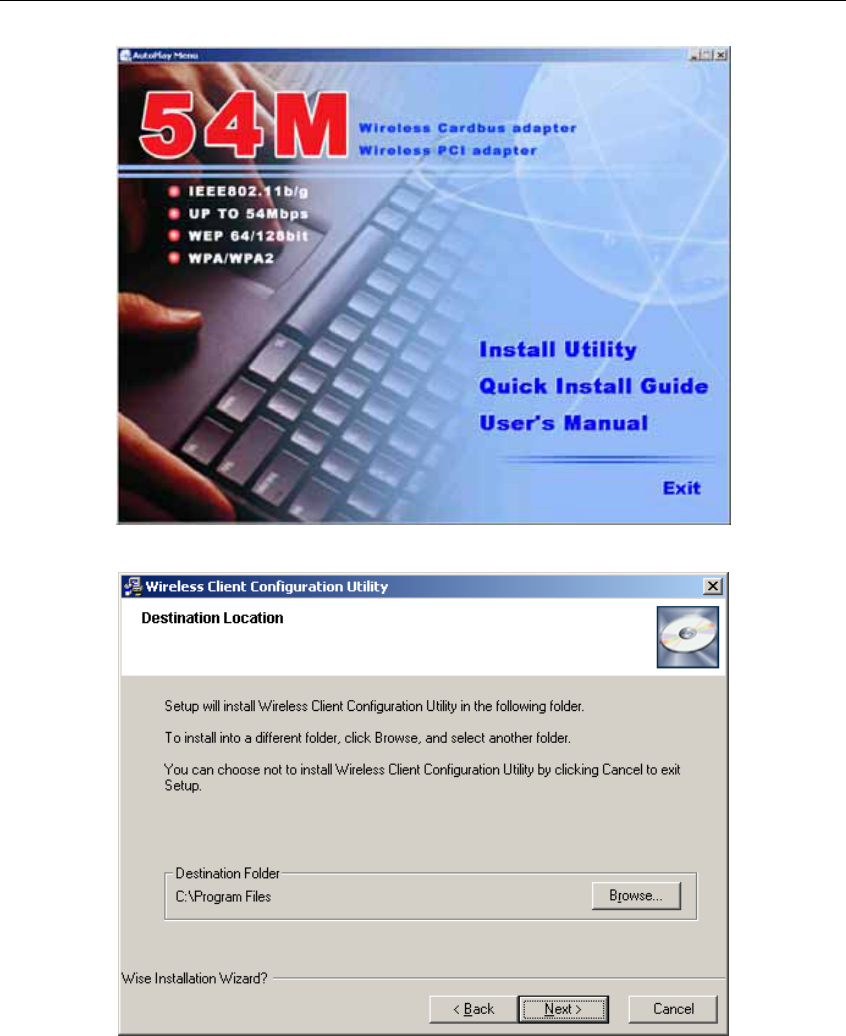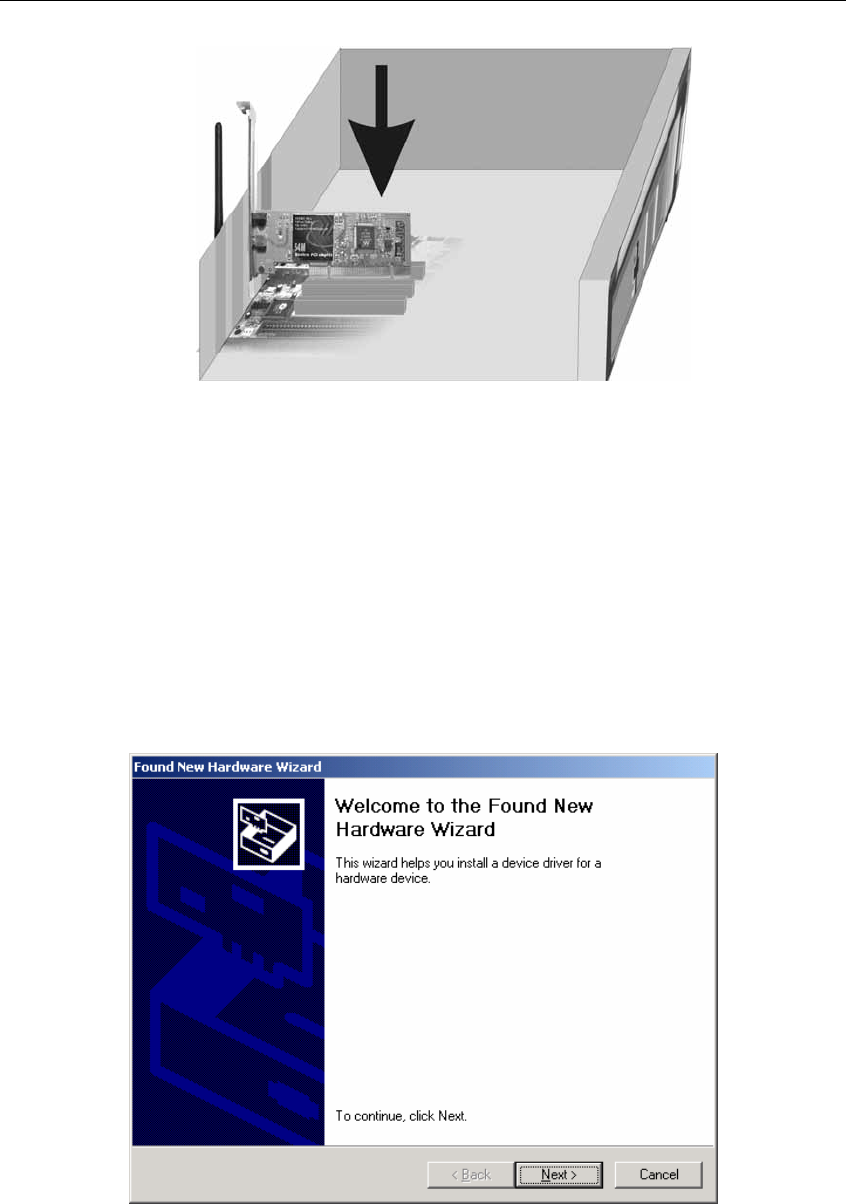 z Reinsert the Wireless Cardbus/PCI Adapter into your PC’s PCI slot/Cardbus slot.